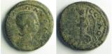 | Otacilia Severa AE 25mm of Thessalonica in Macedonia. MAP OTAKIL CEBHPA AVG, diademed draped bust right / QECCALONIKEWN NEWKORWN, Nike walking left, Kabeiros and palm. SGI 3986, BMC 138. | ![]() | |||