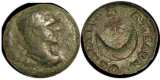 | 5032 | Homonoia with kalathos on her head seated on a throne left, holding patera and cornucopiae. Plate IX 9. | |||
