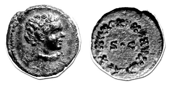 | Cohen 30 | Annius Verus, AE Quadrans, ca. 166 AD. no legend, Annius Verus with diadem of ivy leaves, as Spring / SC within wreath. RIC -; Van Heesch 3B, Cohen III, 30. | Text | Image |