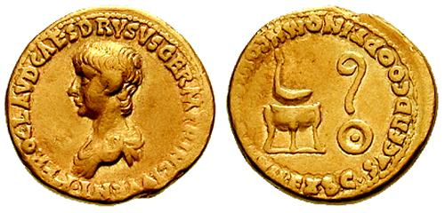 | RIC 75[claudius] var Aureus | Nero and Agrippina II, AV aureus. AD 51-54. NERO CLAVD CAES DRVSVS GERM PRINC IVVENT, bare-headed, draped bust left / AGRIPPINAE AVGVSTAE, draped bust of Agrippina right, wreathed with corn. RIC 75[claudius] var (denarius); Cohen 5 var (ditto); BMC 82 var (ditto). Fischer p. 43 note in SNR 46 (this coin). Münzen and Medaillen Basel, 43, lot 303. | Text | Image | |