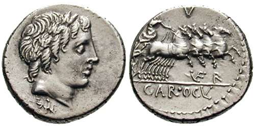 Vergilius, Gargilius & Ogulnius AR Denarius. 86 BC. Laureate head of Apollo right, thunderbolt below / Jupiter in quadriga rights, V above, VER below, GAR.OGVL in ex. Cr350A/1e.