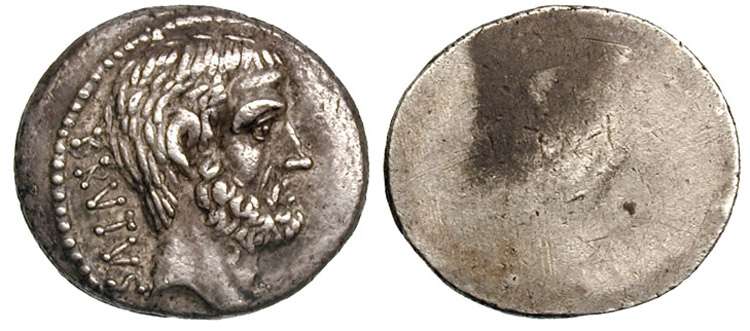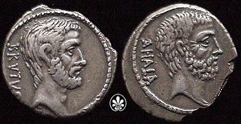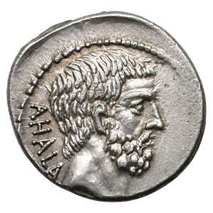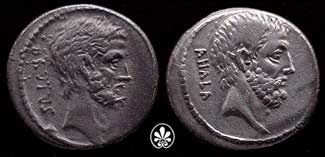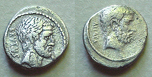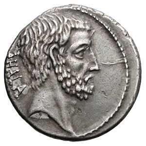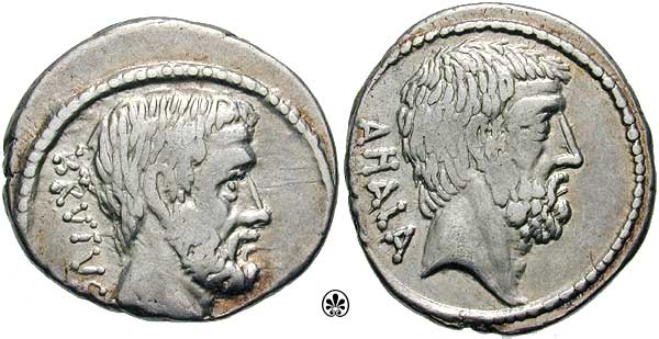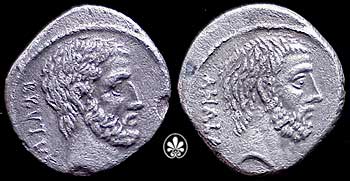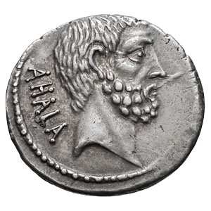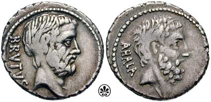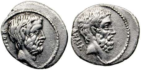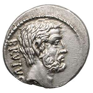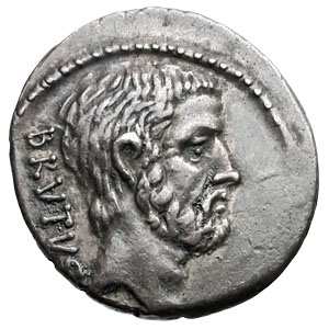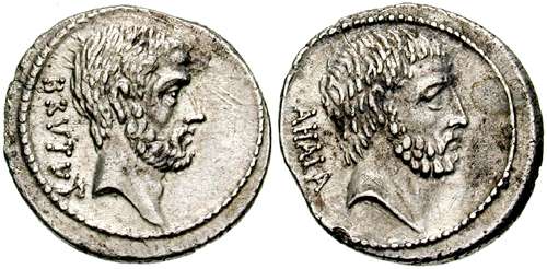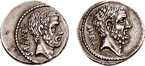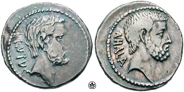Marcus Junius Brutus, as moneyer, AR Denarius. 54 BC. BRVTVS, bare head of L Junius Brutus right / AHALA, bare head of C Servilius Ahala right. Syd 907, Cr433/2.