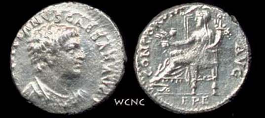 Domitian Denarius. Ephesus mint, 71 AD. DOMITIANVS CAESAR AVG F, bare-headed, draped and cuirassed bust right, aegis on chest / PACI ORB TERR AVG, turreted, draped female bust right, EPE in ex. RIC 1448; RPC 849.