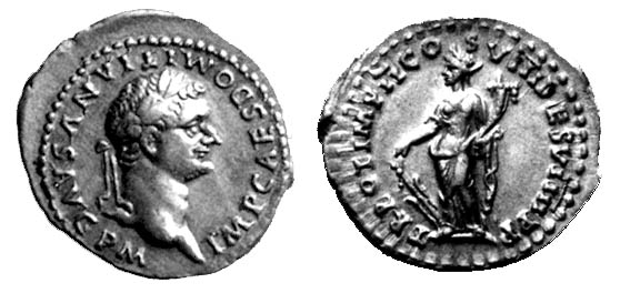 Domitian Denarius. 82 AD. IMP CAES DOMITIANVS AVG P M Laureate head right / TR POT IMP II COS VIII DES VIIII P P, Fortuna standing left with rudder and cornucopiae. RSC 510.