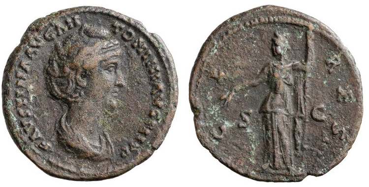 Faustina I AE As. 139 AD. FAVSTINA AVG ANTONINI AVG PII P P, draped bust right / CERES S-C, Ceres standing left, holding corn ears & long torch. Cohen 140.
