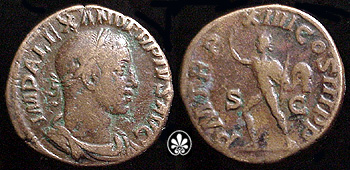 Severus Alexander Æ Sestertius. 235 AD. IMP ALEXANDER PIVS AVG, laureate, draped & cuirassed bust right / P M TR P XIIII COS III PP S C, Sol standing left with whip.